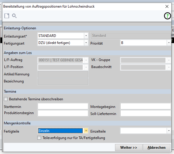 Geb. mit LS (Neues Gebinde über Lohnscheinnummer erzeugen) | |