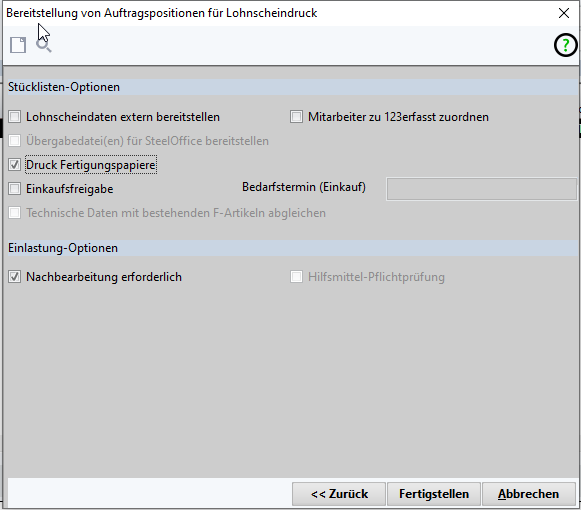 Report/Etikett für ProduktionsID (F-Artikel) und Lohnschein