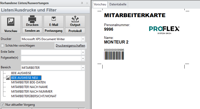 Druckvorschau - Report: BDE AUSWEISE NEU drucken
