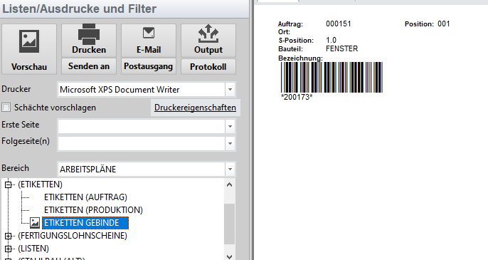 5. Den Report: ETIKETTEN GEBINDE ausdrucken