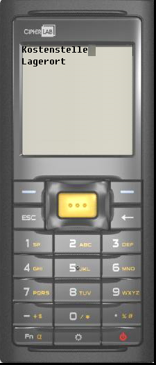 2. Kostenstelle und Lagerort eintippen. Alternativ können diese Eingaben auch gescannt werden, wenn die Barcodes vorhanden sind. | ![]() |