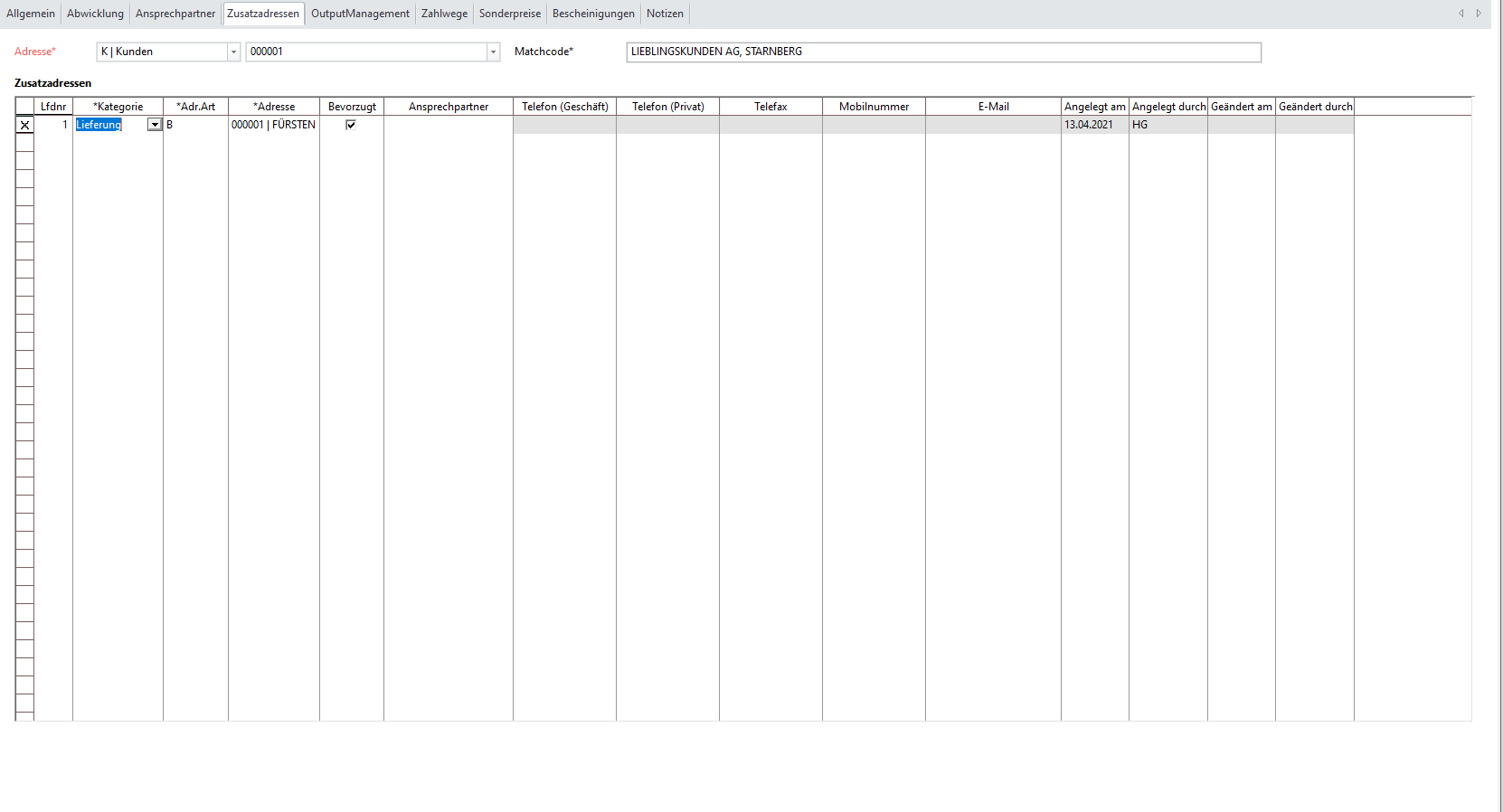 In den Zusatzadressen können verbundene Adressen zur im Kopf gewählten Adresse angegeben werden.