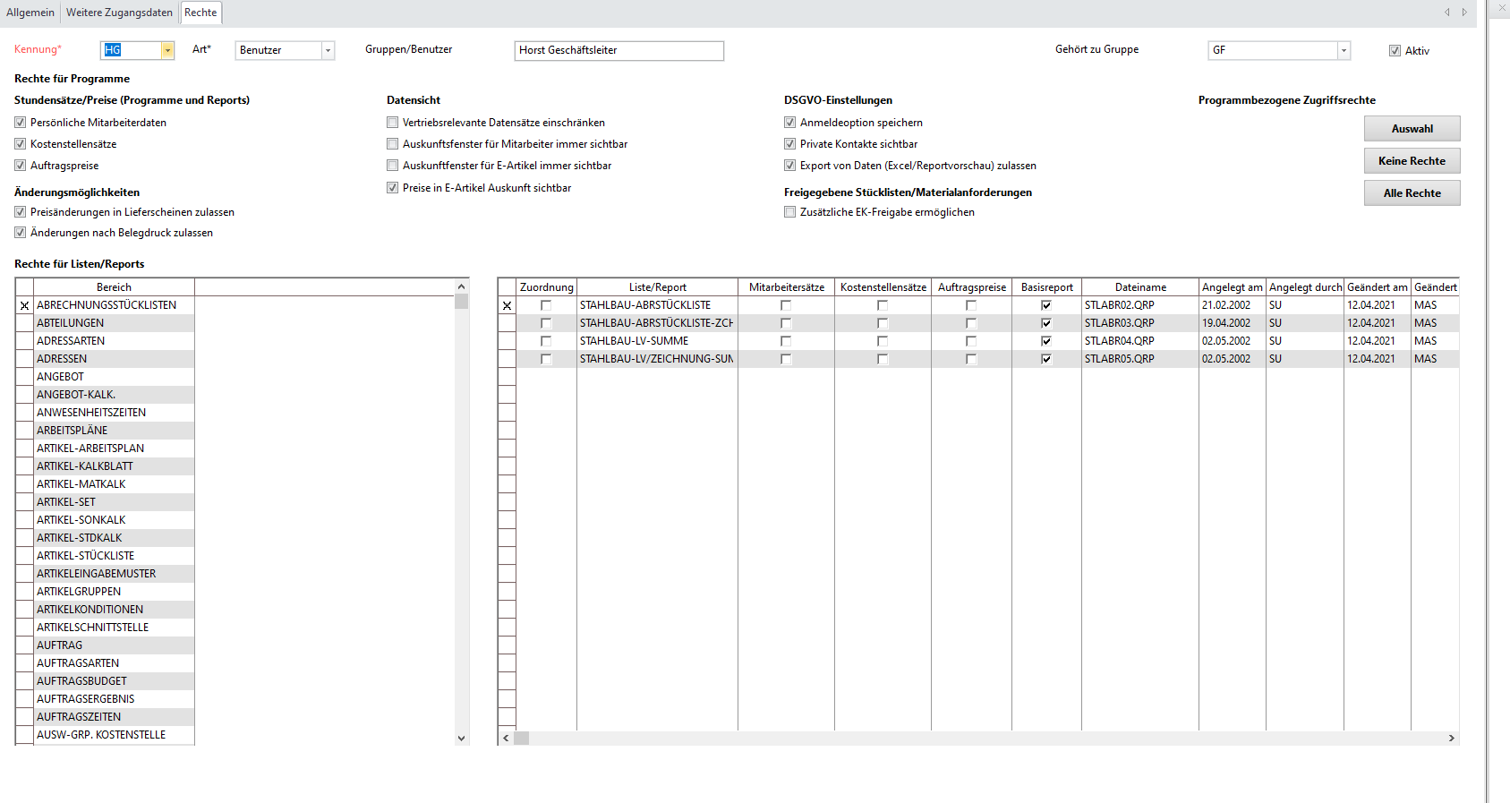 Dann können Sie in der Benutzerverwaltung, für bestimmte Mitarbeiter, die Option Änderung nach Belegdruck zulassen setzten.