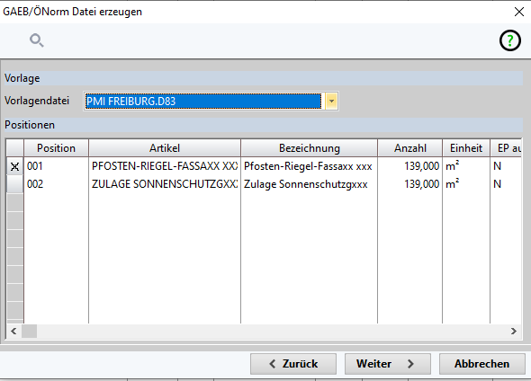 Wichtig ist das nur Positionen als GAEB-Datei ausgegeben werden können, die zuvor aus einer GAEB-Datei importiert wurden.