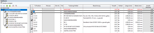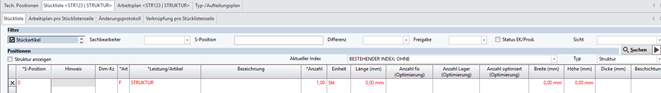 Nach Wechsel zur Struktur – Aus der Spalte <Hauptteil, Einzelteil> wird die Spalte <S-Position>