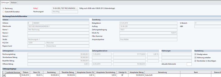 Gutschrift wird in OP-Verwaltung ausgebucht und als Zahlung zur vorangegangen Abschlagsrechnung eingegeben.
