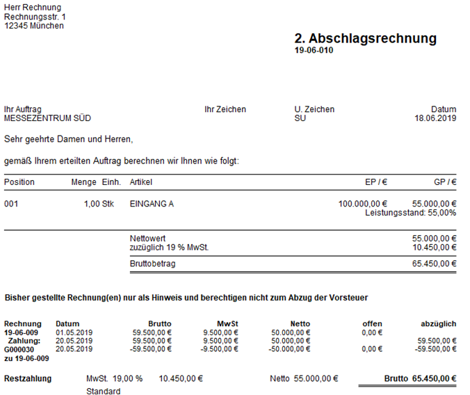 Danach wird erst die nächste Abschlagsrechnung erstellt.