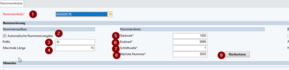 Nächste Nummer (8): Hier wird die nächste freie Nummer, welche vergeben wird, angezeigt.
