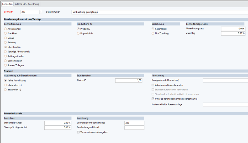 Anlegen einer neuen Lohnart Umbuchung geringfügig