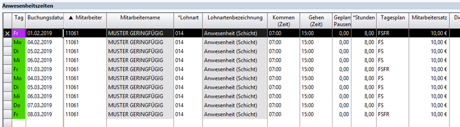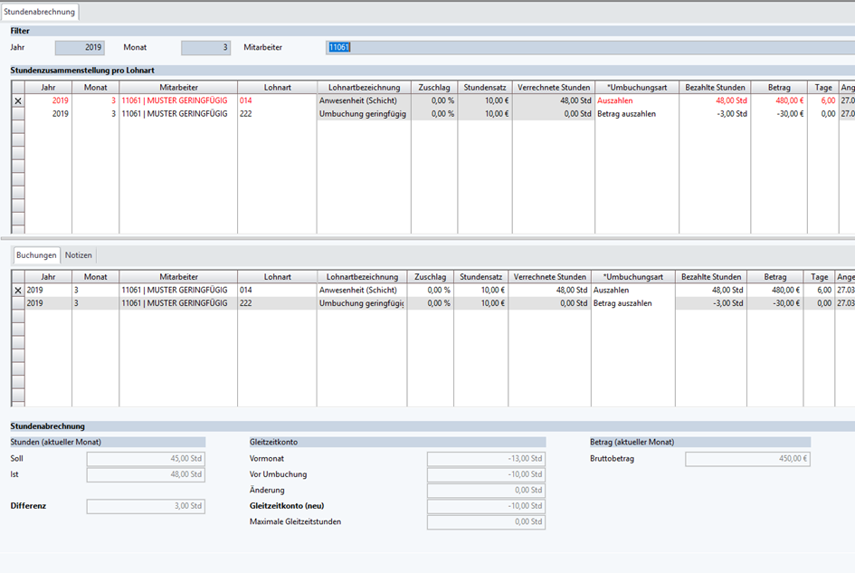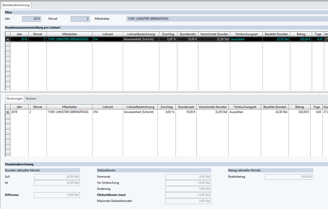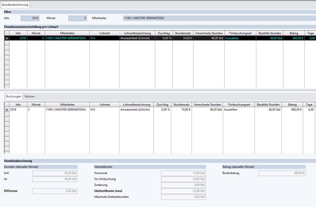 Zusätzlich zur Anwesenheitslohnart gibt es eine weitere Lohnart, die nach der Abrechnung zur Umbuchung verwendet werden muss.