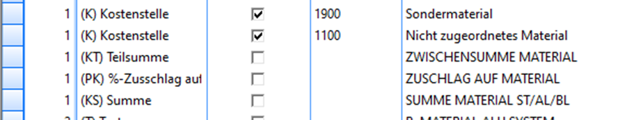 Hierzu gehört die Art „(T) Text“, „(K) Kostenstelle“, „(KS) Kostenstellensumme“