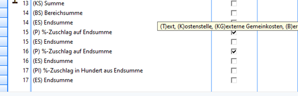 Hinweis: Je Endsumme wird in der Regel ein Zuschlag definiert. Mehrere Zuschläge können angegeben werden. Diese beziehen sich immer auf die Endsumme.