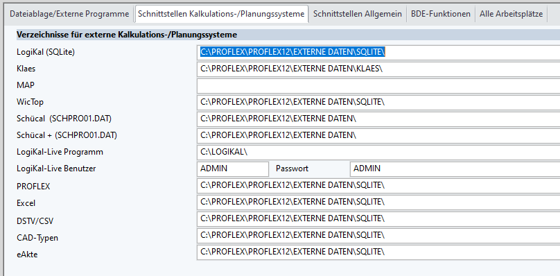 LogiKal | Angabe der Pfade zu den Ablageverzeichnissen der jeweiligen Anwendung | |