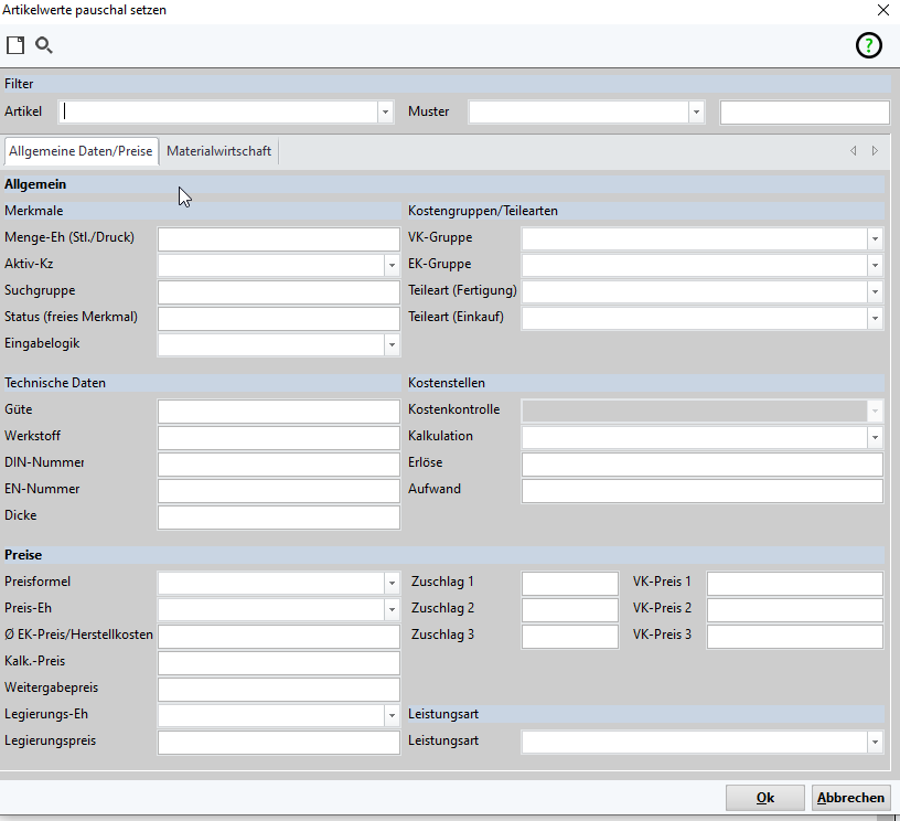 Artikelwerte pauschal setzen