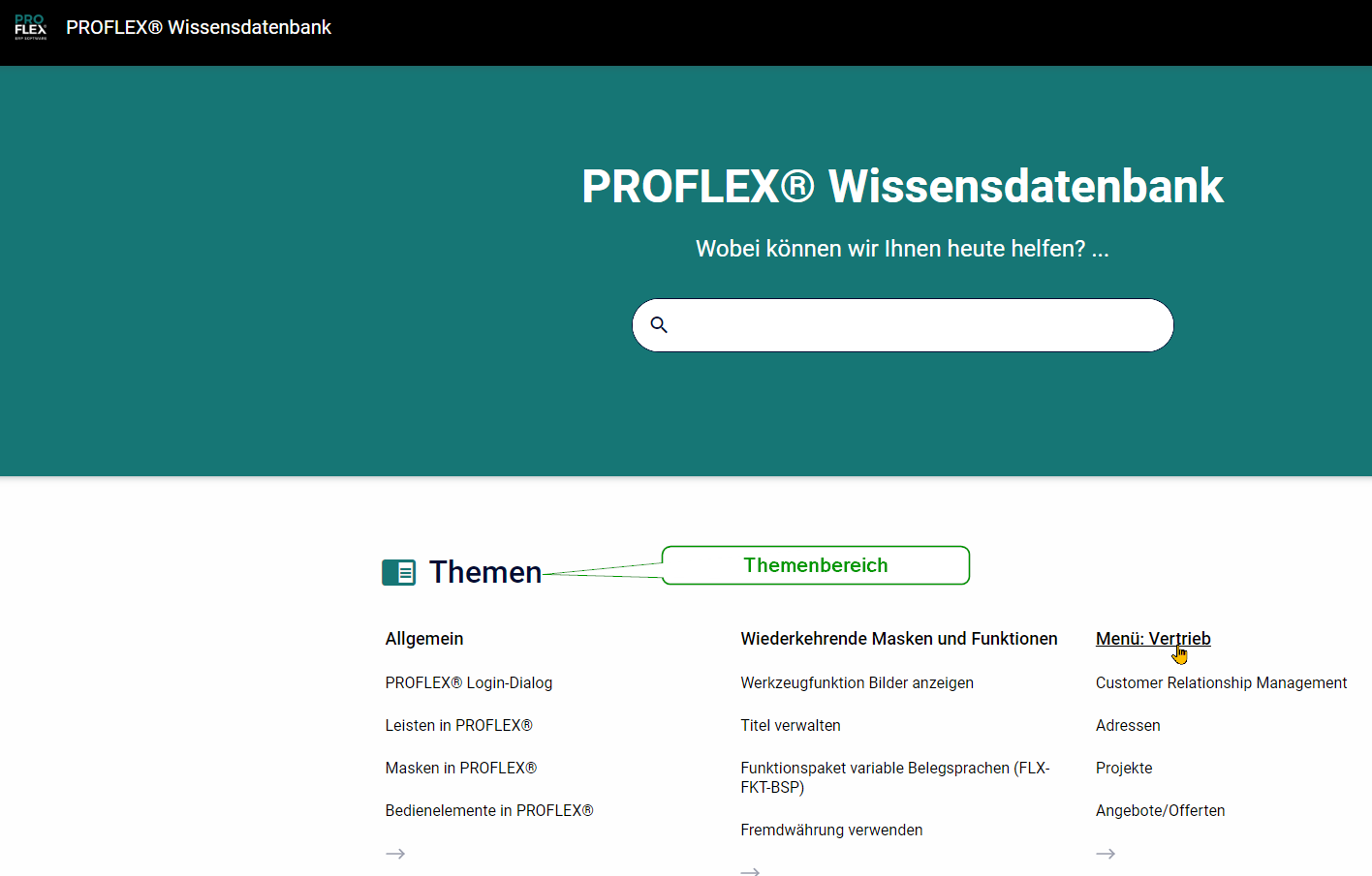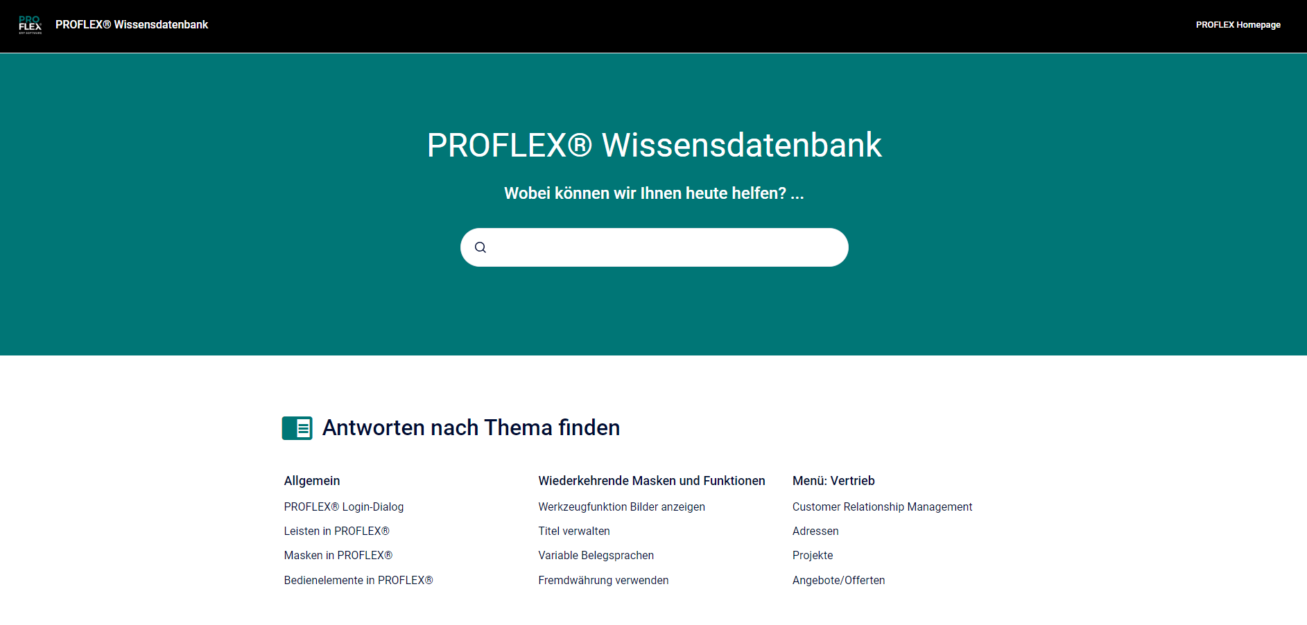 Startseite der Onlinehilfe / Wissensdatenbank