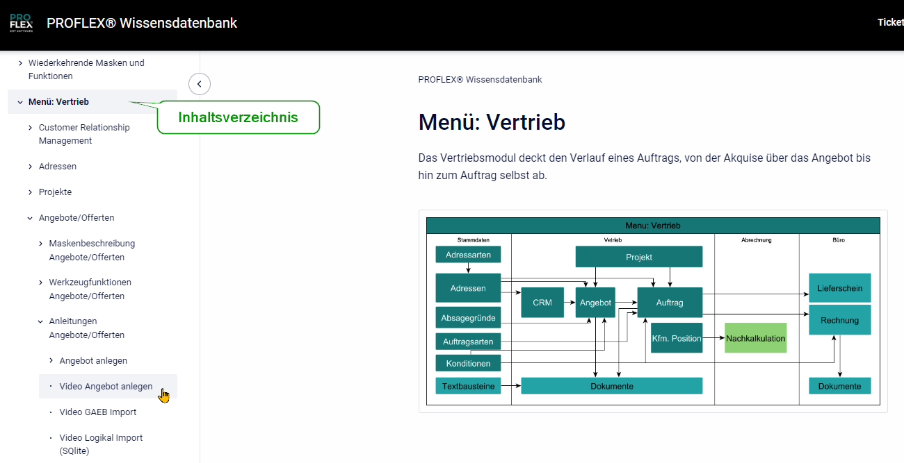 Eingabe in der Sucheingabe nach z.B. Angebot Video zu suchen.