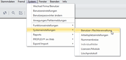 Auswahl eines PROFLEX Benutzer oder einer Benutzergruppe