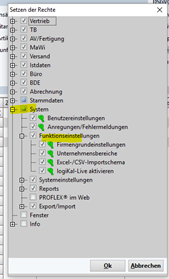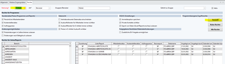 Benutzer-/Rechteverwaltung Rechtevergabe/Freigabe Reports