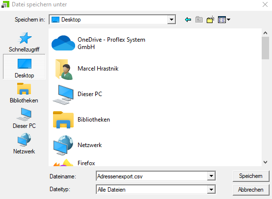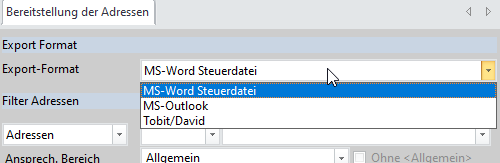 Mit der Funktion „Bereitstellen von Adressen“ kann man Adressen aus dem PROFLEX für zB. eine Serienbrieferstellung im Word exportieren.
