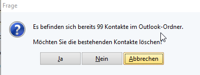 JA- alle vorhanden Kontakte werden gelöscht und die neuen Adressen angelegtNEIN- es werden die Kontaktdaten um die Adressen ergänzt