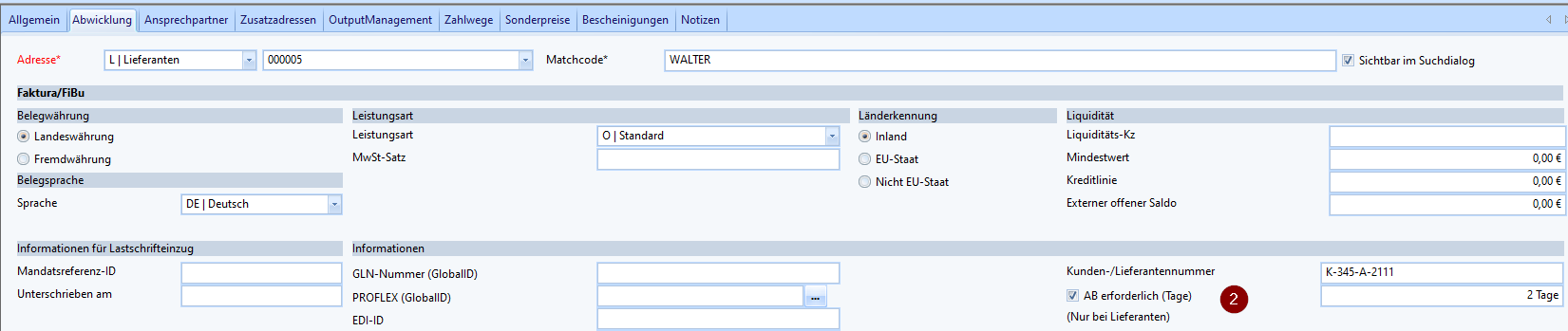 Im Adressenstamm kann dies als Vorgabe angegeben werden. (2)