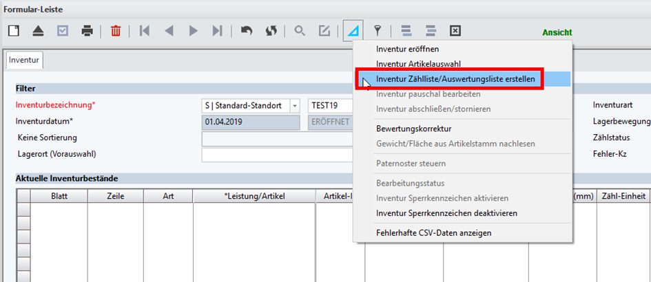 Eröffnen einer Inventur