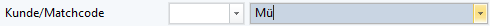 Gibt man nur S ein und will mit TAB weiterspringen, so geht das nicht. Es öffnet sich eine Combobox, in der ein konkreter Kunde von den beiden, die mit S beginnen, ausgewählt werden muss: