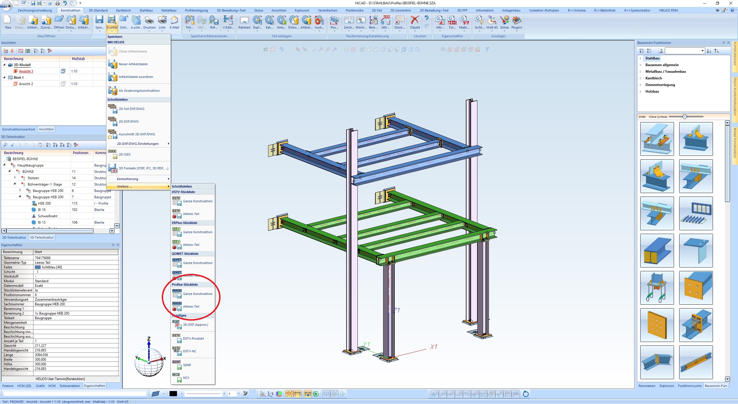 HICAD mit Export für PROLFEX