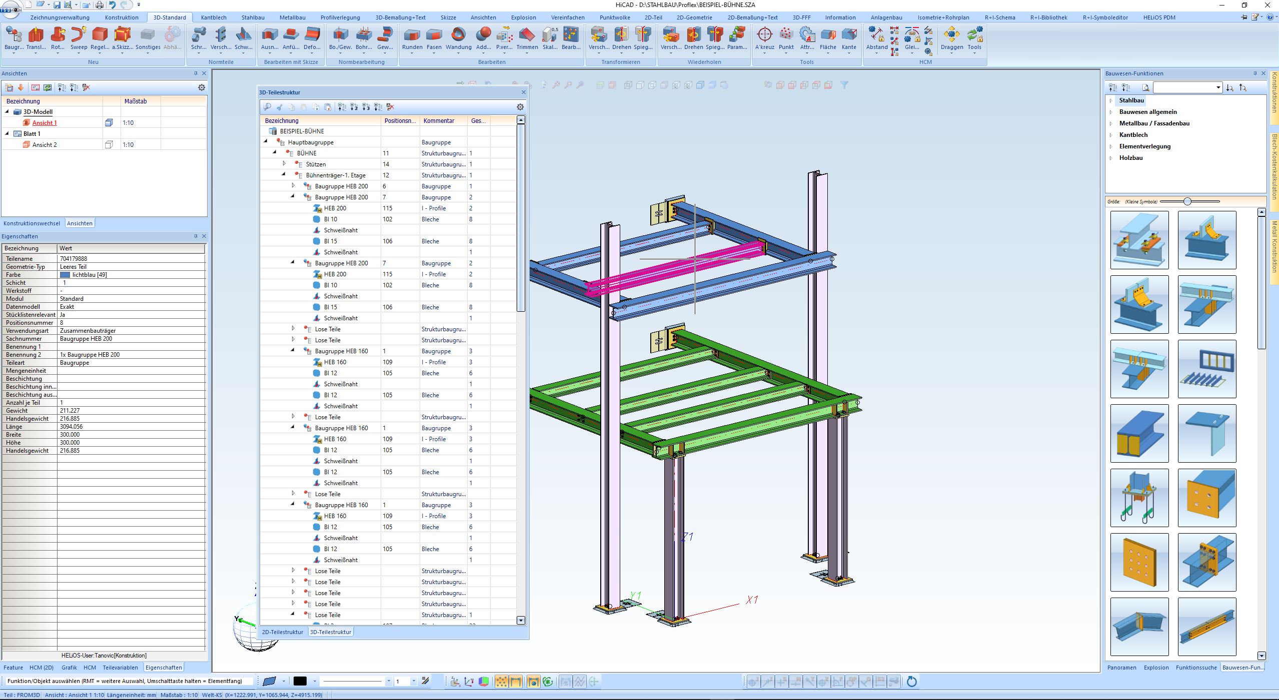 HICAD stellt eine Struktur- und eine Mengenliste zur Verfügung