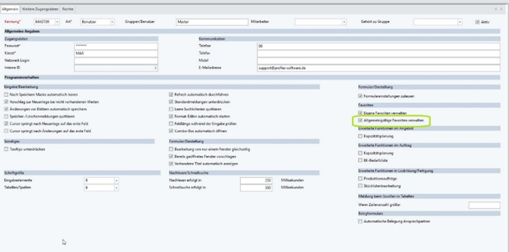 Hierfür wird das Recht <Allgemeingültige Favoriten verwalten> benötigt, das in der Benutzer -/Rechtverwaltung vergeben werden kann.