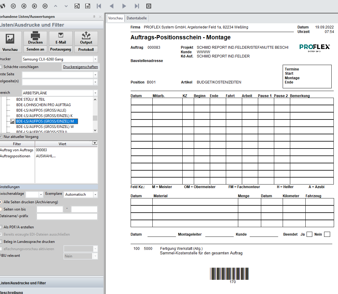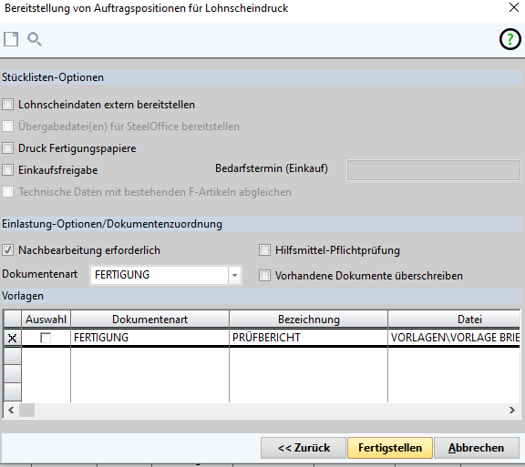 Fertigung | Einlasten und drucken (Lohnschein erstellen)