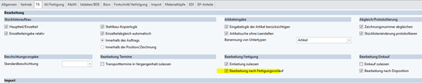 Firmengrundeinstellungen - TB – Fertigung - Fertigungsvorlauf