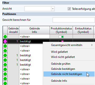 Die Ermittlung erfolgt automatisch und das Ergebnis wird in der Tabellenspalte Gebinde-Info dargestellt