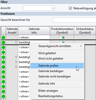 Die Ermittlung erfolgt automatisch und das Ergebnis wird in der Tabellenspalte Gebinde-Info dargestellt