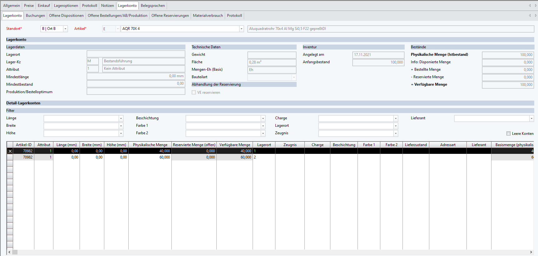 Beim Lagerort 1 wurden 40 gezählt und beim Lagerort 60 Stück. Daraus ergibt sich ein Istbestand von 100.