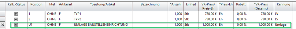 Kalkulation mit Umlage(position)