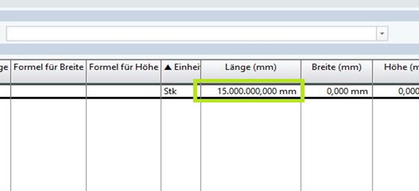 Nun wurde der Wert für das Feld Länge in den Materialkosten berechnet.