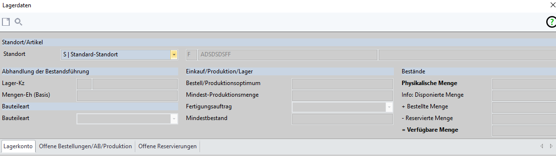 | Lagerkonto Anzeige des Lagerkontos |