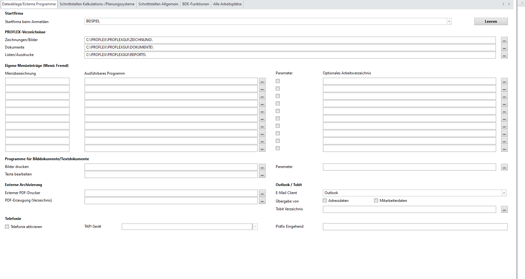 Telefonie aktivieren | Aktivieren wenn in Ihrem Unternehmen eine Telefonanlage mit TAPI - Schnittstelle vorhanden ist | |