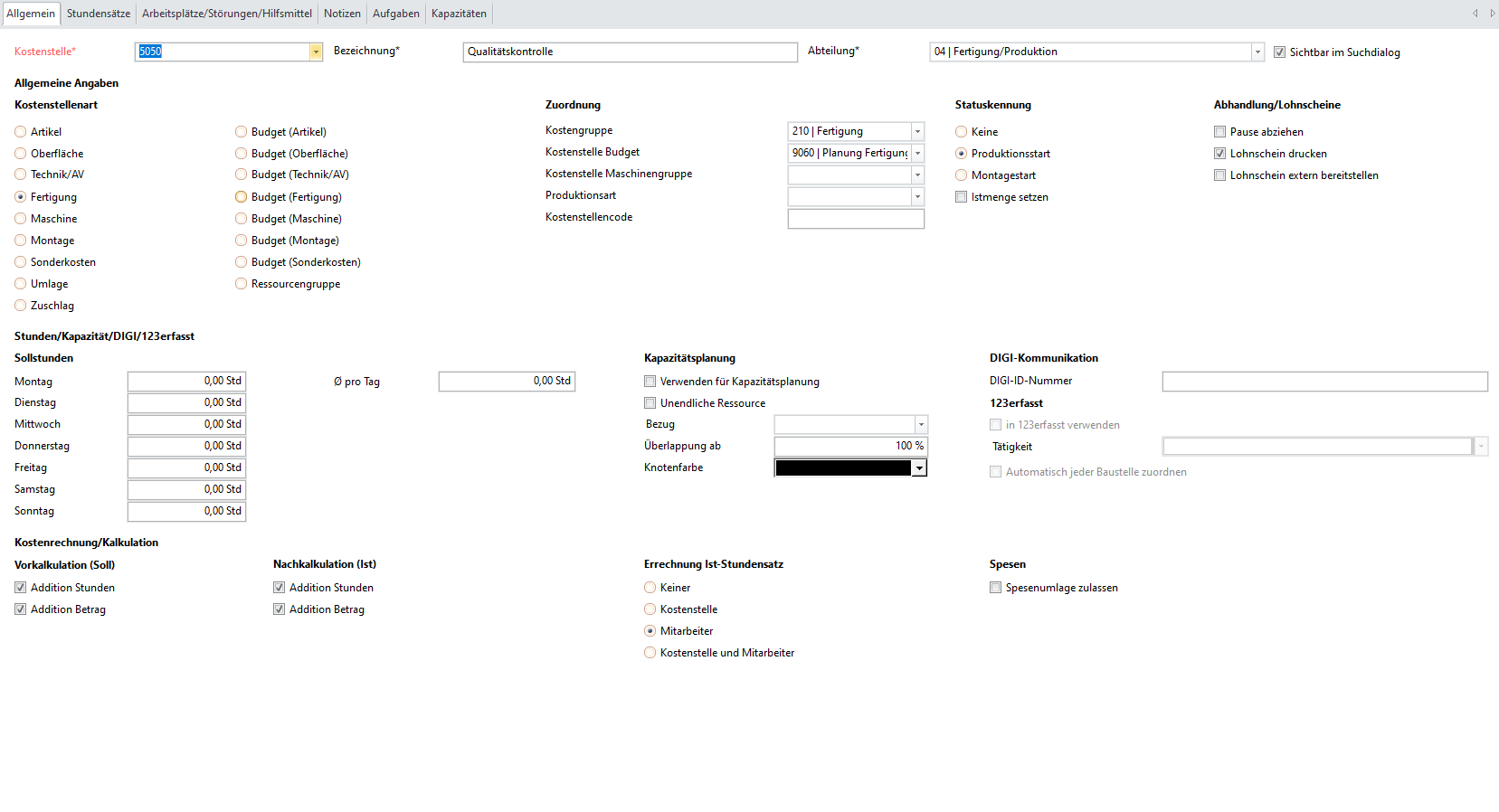 Kostenstelle und Mitarbeiter | Verwendung des Kostenstellensatzes + des Mitarbeitersatzes | Verwendung in der Nachkalkulation |