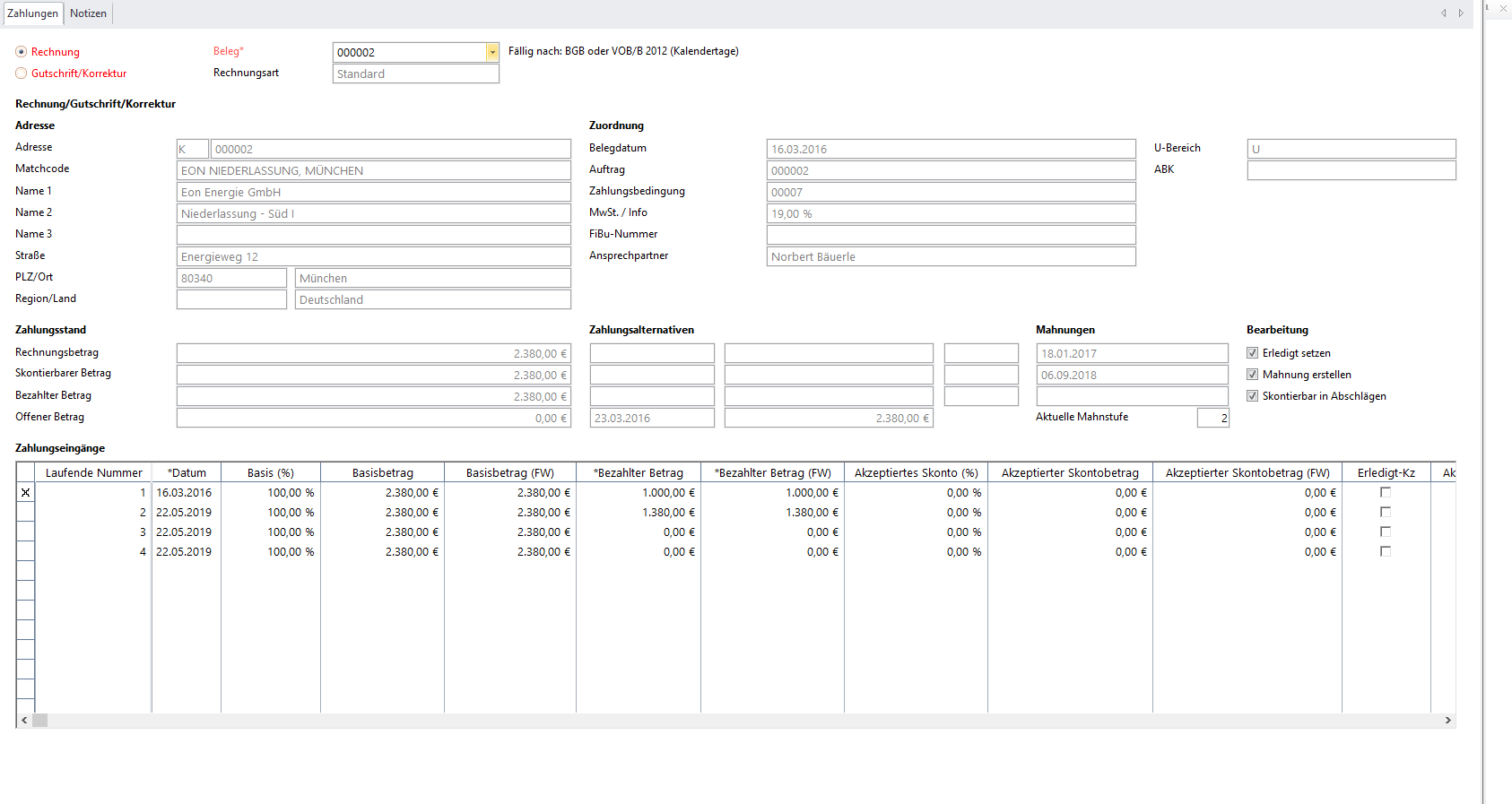 Erledigt-Kz | Wird autom. gesetzt, wenn der geforderte Betrag eingegeben wurde | |