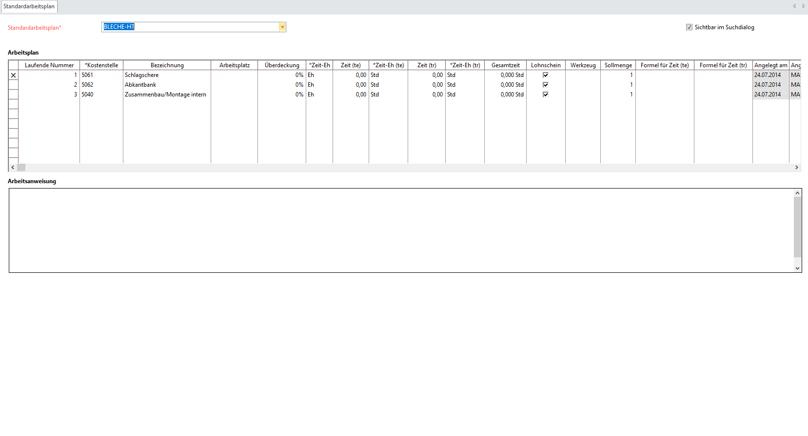 Sichtbar im Suchdialog | Aktivieren, wenn der Standardarbeitsplan im Auswahldialog angezeigt werden soll. | |