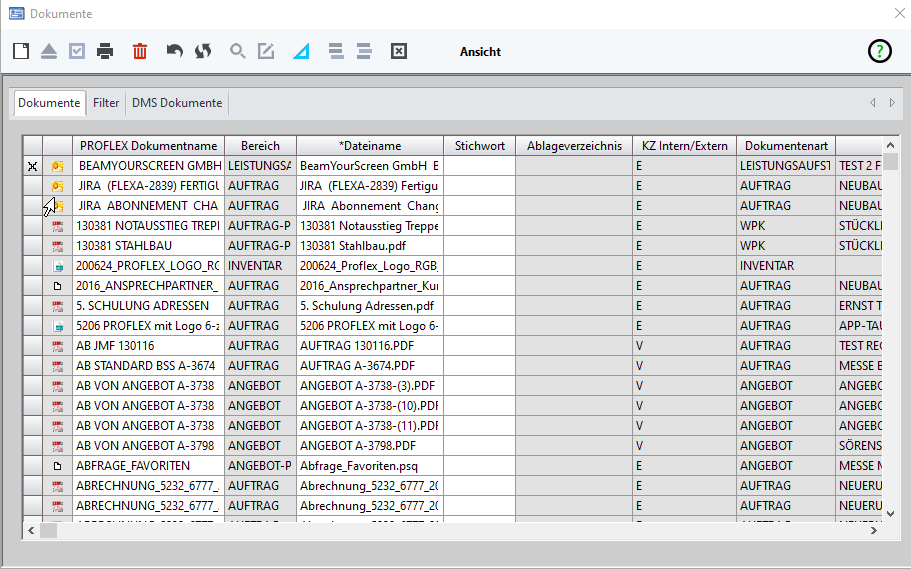 Bereich | Anzeige zu welchem Bereich das Dokument gehört | Alle kfm. Bereiche von PROFLEX und eigene Ordner |