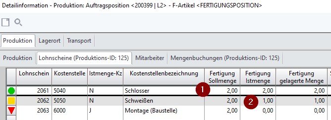 Im InfoCenter Fertigung wird die Mengenmeldungen unter dem Bearbeitungsstatus zu der Teile-I.d.Nr. angezeigt.