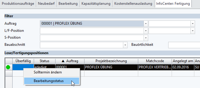 Aufruf: AV/Fertigung | Losbildung/Fertigung Reiter InfoCenter: Fertigung