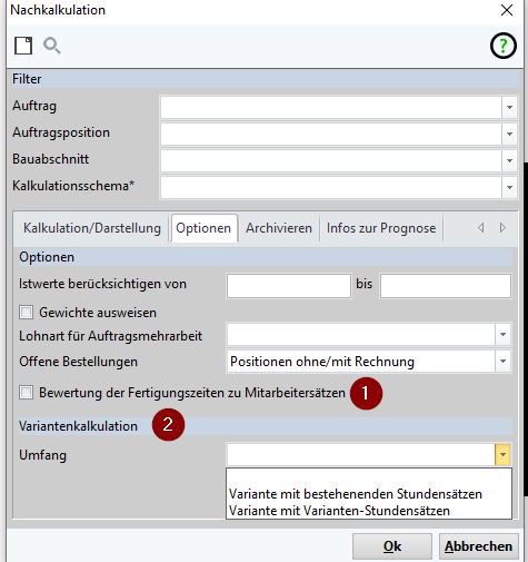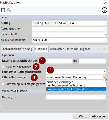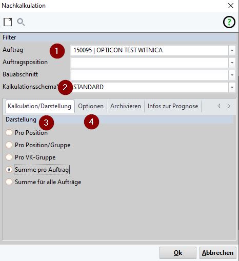 (3) Darstellung: Auswahl ob die Nachkalkulation je