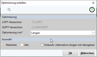 Es kann vor der Optimierung, anhand der Stückliste eine Anfrage auf Lfm-Basis an die Lieferanten erfolgen, um deren Einkaufs-, Lagerlängen abzufragen