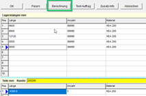 In der Stückliste wird nun in einem 2. Schritt für jedes Profil angeben wie viele davon
