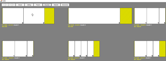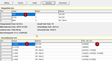 (2) Anzeige der Zuschnitts Muster mit der Anzahl einer Länge und wie diese gesägt wird (3)
