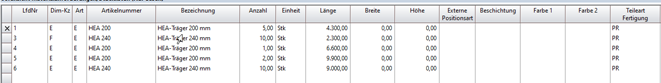 Es ist auch möglich, in der Bedarfsliste, die Länge anzupassen, wenn diese in einer Standardeinkaufslänge bestellt werden sollen.